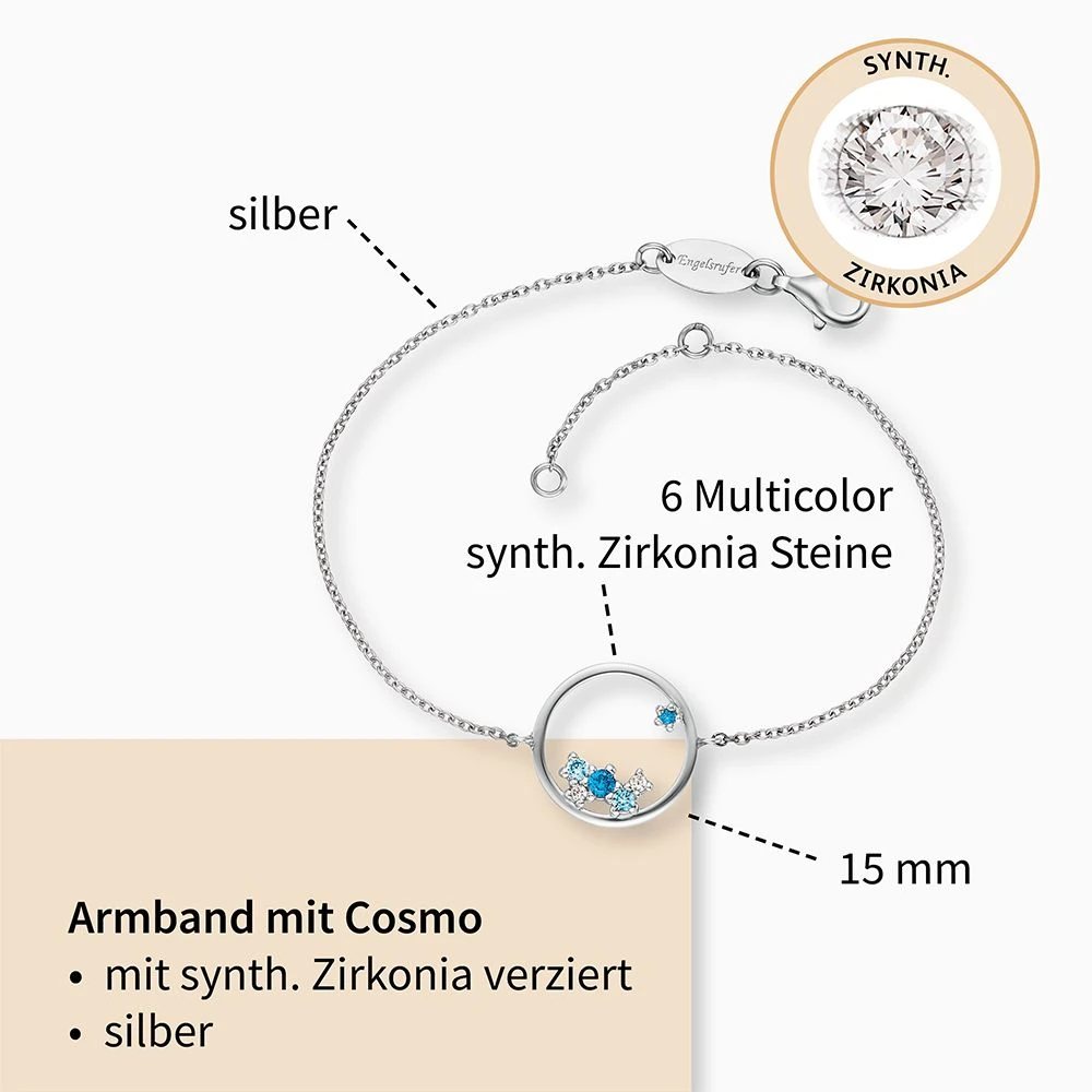 Dein Kosmos – der dir Ruhe und Kraft schenkt. Das Sternenbild besteht aus edlen schimmernden synthetischen Zirkonia Steinen. Was könnte femininer sein als strahlend schöne Kristalle umgeben von klassischem Silber. Das wunderschöne Schmuckstück wird mit einem Karabinerhaken verschlossen und ist in zwei Längen verstellbar. Kombiniert mit mehreren Armbändern und Uhren entsteht ein toller Layering-Effekt, der als Duo, Trio oder Quartett eine wunderschöne Symphonie ergibt.