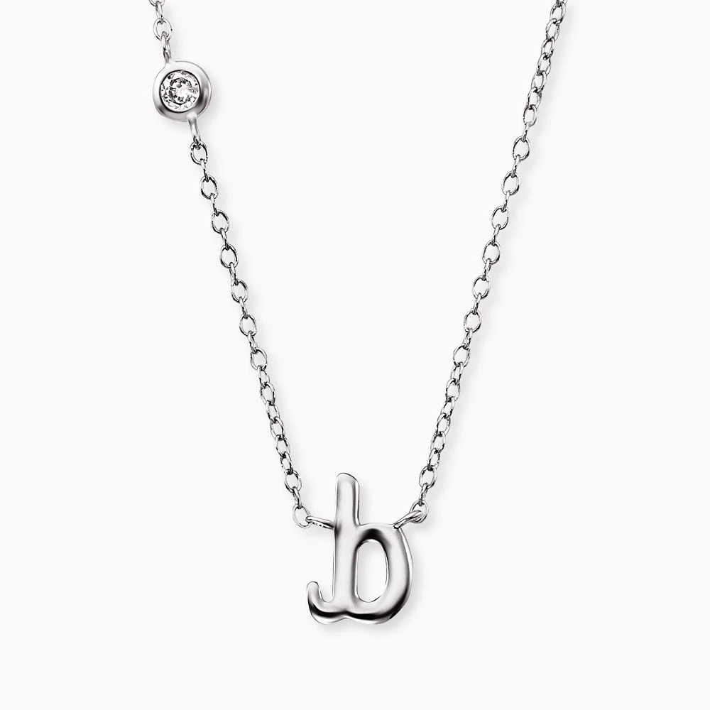 Initialkette in Silber für den individuellen Auftritt. Befestigt an einer filigranen Kette befindet sich Dein persönlicher Buchstabe. Ein besonderes Highlight ist der edel schimmernde synthetische Zirkonia Stein, welcher seitlich oberhalb des Initialbuchstabens die Kette schmückt. Denn was könnte femininer sein als strahlend schöne Kristalle umgeben von klassischem Silber.