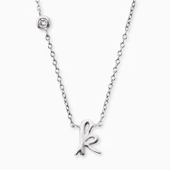 Initialkette in Silber für den individuellen Auftritt. Befestigt an einer filigranen Kette befindet sich Dein persönlicher Buchstabe. Ein besonderes Highlight ist der edel schimmernde synthetische Zirkonia Stein, welcher seitlich oberhalb des Initialbuchstabens die Kette schmückt. Denn was könnte femininer sein als strahlend schöne Kristalle umgeben von klassischem Silber.