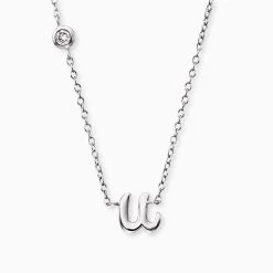 Initialkette in Silber für den individuellen Auftritt. Befestigt an einer filigranen Kette befindet sich Dein persönlicher Buchstabe. Ein besonderes Highlight ist der edel schimmernde synthetische Zirkonia Stein, welcher seitlich oberhalb des Initialbuchstabens die Kette schmückt. Denn was könnte femininer sein als strahlend schöne Kristalle umgeben von klassischem Silber.
