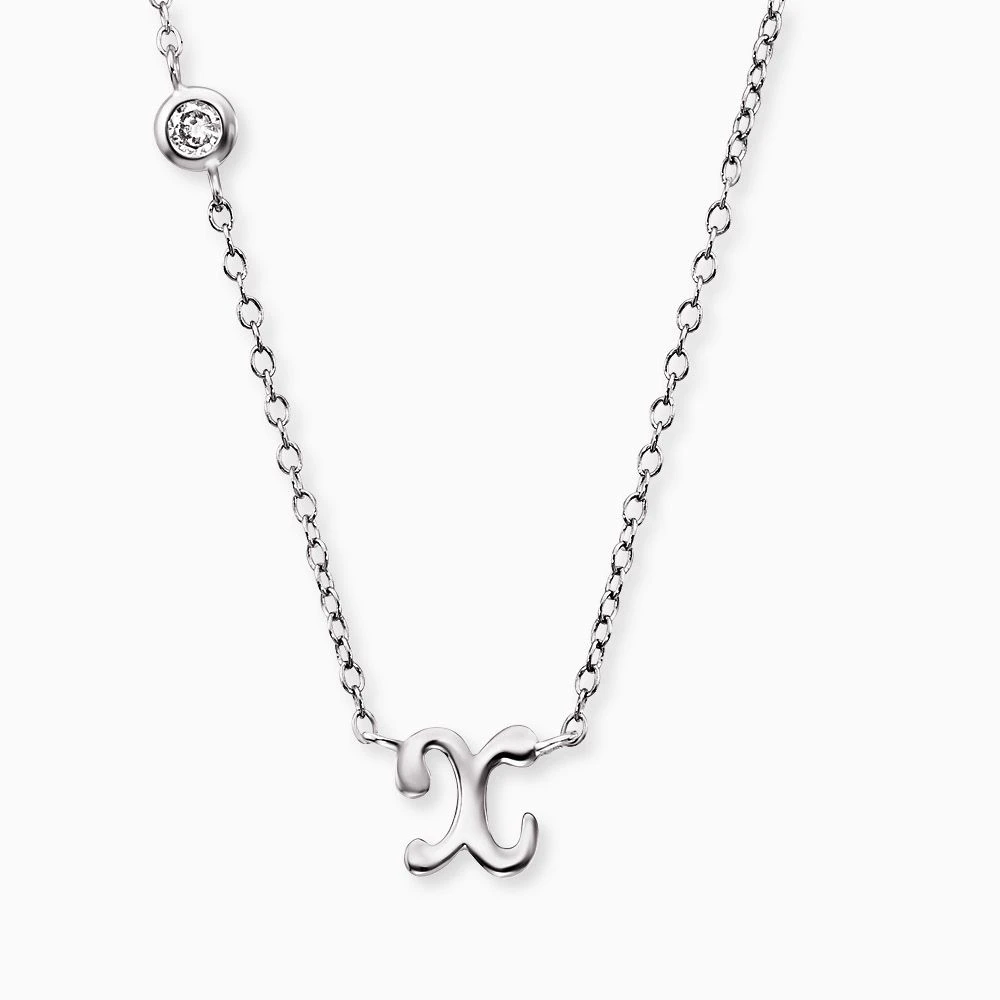 Initialkette in Silber für den individuellen Auftritt. Befestigt an einer filigranen Kette befindet sich Dein persönlicher Buchstabe. Ein besonderes Highlight ist der edel schimmernde synthetische Zirkonia Stein, welcher seitlich oberhalb des Initialbuchstabens die Kette schmückt. Denn was könnte femininer sein als strahlend schöne Kristalle umgeben von klassischem Silber.