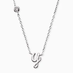 Initialkette in Silber für den individuellen Auftritt. Befestigt an einer filigranen Kette befindet sich Dein persönlicher Buchstabe. Ein besonderes Highlight ist der edel schimmernde synthetische Zirkonia Stein, welcher seitlich oberhalb des Initialbuchstabens die Kette schmückt. Denn was könnte femininer sein als strahlend schöne Kristalle umgeben von klassischem Silber.