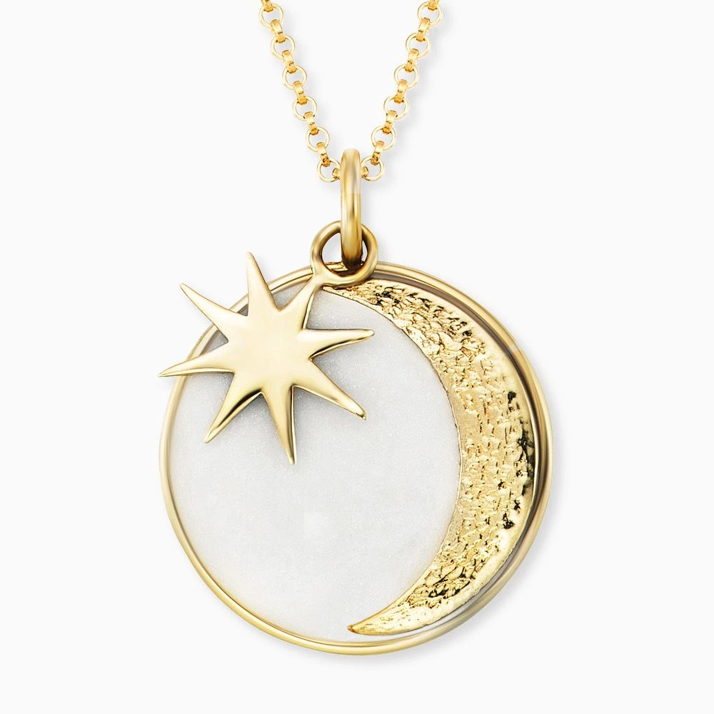 Moonlight Glam – hell am Himmelszelt funkeln die Sterne und der Mond scheint klar. Die Tage werden länger und die Nächte kürzer. Unsere wundervolle Engelsrufer Kette zeigt Dir, gebettet auf weißem Emaille, wie die Sterne funkeln. Die vergoldete Kette ist ein absoluter Hingucker und lässt sich wunderbar kombinieren. Sie unterstreicht Deine natürliche Schönheit und Weiblichkeit. Das wunderschöne Schmuckstück wird mit einem Karabinerhaken verschlossen und ist in zwei Längen verstellbar.