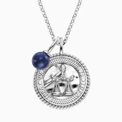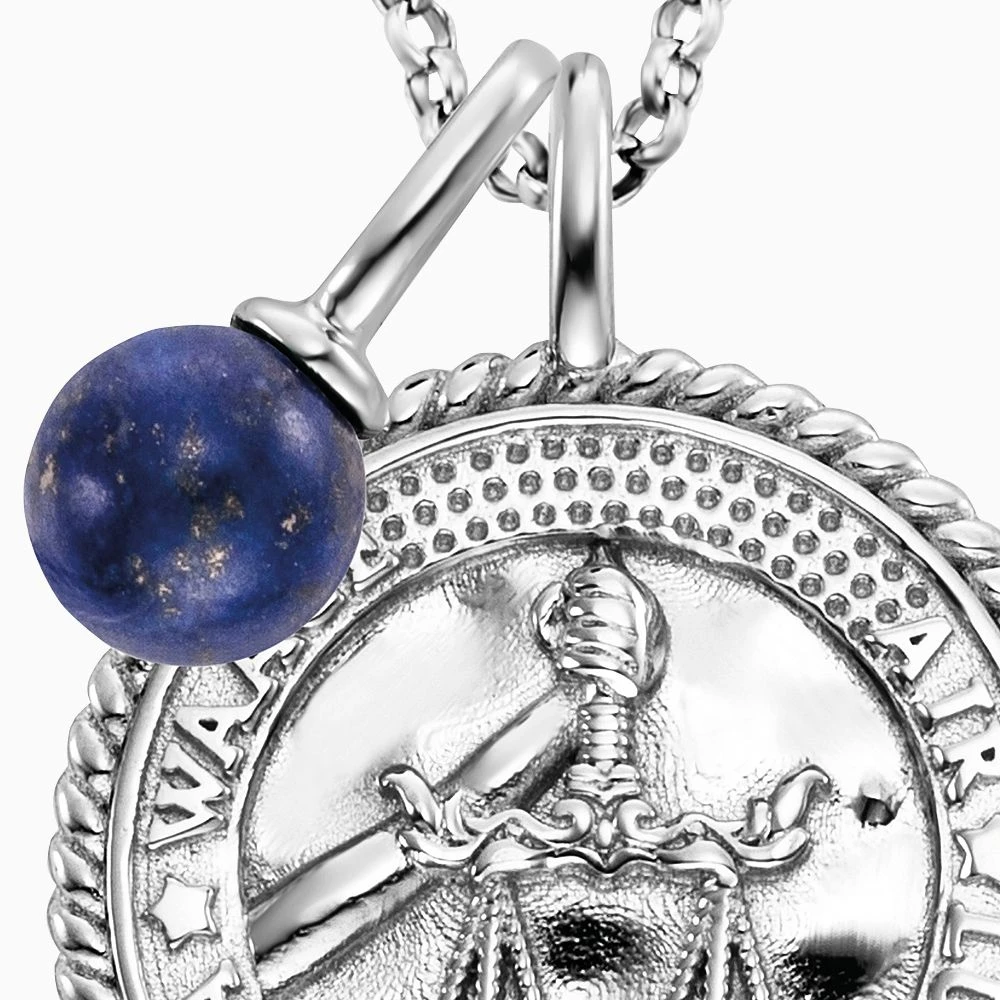 Die Schönheit der Natur kombiniert mit Deinem persönlichen Sternzeichen Waage (24.9. – 23.10.) wird in unserer wunderschönen Halskette mit Anhänger aus dem Naturstein Lapislazuli dargestellt. Die Münze des Schmuckstücks zeigt das bedeutungsvolle Symbolbild des Tierkreises, den Namen Waage und das Element Luft auf der Vorderseite, sowie das Sternenbild auf der Rückseite als Gravurtext. Der Lapislazuli, als persönlicher Kraftstein, wird mit seiner Konfliktfähigkeit verknüpft.