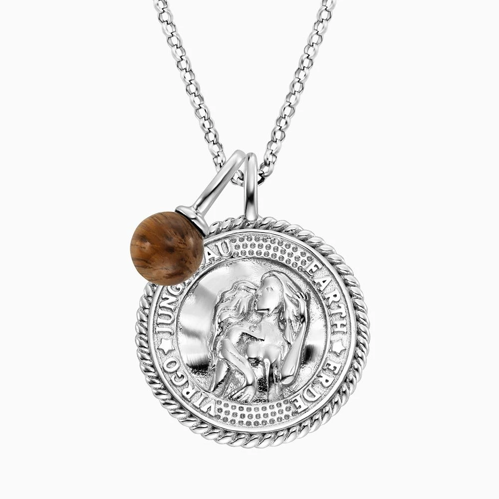 Die Schönheit der Natur kombiniert mit Deinem persönlichen Sternzeichen Jungfrau (24.08. bis 23.09.). Unsere wunderschöne Halskette mit Tigerauge Edelstein zeigt Dir das bedeutungsvolle Symbolbild des Tierkreises und Deiner Kraftperle. Als Gravurtext findest Du den Namen Jungfrau und die lateinische Bezeichnung Virgo sowie das Element Erde auf der Vorderseite der Münze und das Sternenbild auf der Rückseite. Das Tigerauge als persönlicher Kraftstein hilft der Jungfrau, alles Überflüssige loszulassen und in Balance zu kommen. Das zeitlose Schmuckstück ist perfekt für alle, die sich für Horoskope und Astrologie interessieren und ihren Geburtsstein tragen möchten.