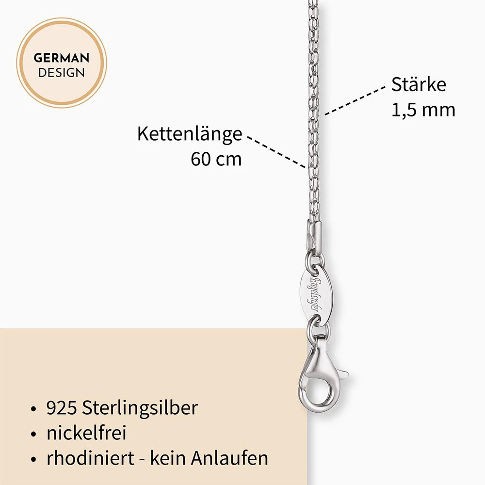 Keep it so simple: Unsere Engelsrufer Kette, die jede kreative Kombinationsmöglichkeit nach Lust und Laune mit macht. Kombiniert mit mehreren Ketten und Anhängern entsteht ein toller Layering-Effekt, der als Duo, Trio oder Quartett eine wunderschöne Symphonie ergibt. Dieses zeitlose filigrane Schmuckstück wird mit einem Karabinerhaken verschlossen und ist in zwei Längen verstellbar.