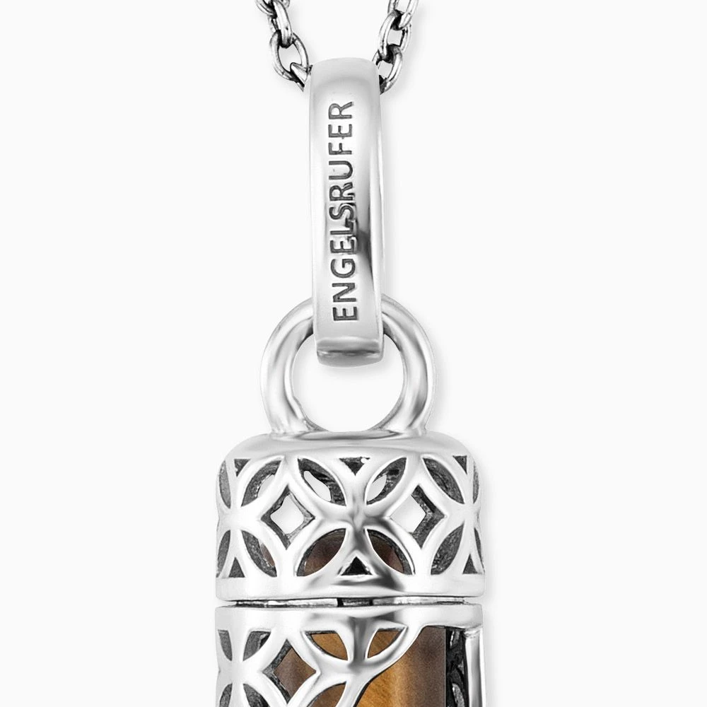 Dein persönlicher Kraftstein in einem filigranen Anhänger aus unserer Powerful Stone Kollektion. Unsere wunderschöne Engelsrufer Kette mit einem bezaubernden Schmuckgehäuse als Anhänger, präsentiert Dir hier ein Tigerauge als „Stein der Balance und Einsicht“. Der Kraftstein kann nach individuellem Befinden und Belieben ausgetauscht werden. Das silberne Körbchen umschließt den Kraftstein schützend und besticht durch das wunderschöne Muster der Lebensblume. Die Lebensblume überzeugt durch ihre kraftvolle Formensprache und schenkt Dir Harmonie und Ausgeglichenheit. Kraftsteine brauchen die richtige Pflege, um eine lange Lebensdauer der Steine zu garantieren. Deswegen bekommst Du mit jedem Produkt aus unserer Powerful Stone Kollektion eine kleine Guideline mit den wichtigsten Schritten zum Entladen, Reinigen und Aufladen. Das zeitlose Schmuckstück wird mit einem Karabinerhaken verschlossen und ist in drei Längen verstellbar. Engelsrufer verwendet für seine Schmuckstücke die hochwertigste Legierung 925er Sterlingsilber. Das als weitere Veredelung verwendete Rhodium dient dem angenehmen Tragekomfort und schützt es vor dem Anlaufen. Alle Schmuckstücke sind nickelfrei und somit auch für Allergiker hervorragend geeignet.