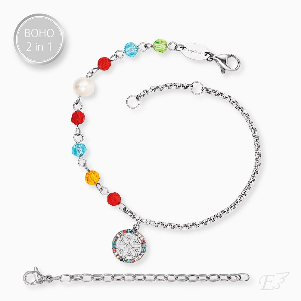 Flower of Life – dieses filigrane Armband mit Lebensblume Anhänger sorgt für einen tollen Blickfang und überzeugt durch ihre kraftvolle Formensprache. Seit langer Zeit symbolisiert die Lebensblume Harmonie und Ausgeglichenheit und ist ein Zeichen von Ruhe, Kraft und Lebensfreude zugleich. Ein besonderes Highlight sind die edel schimmernden synthetischen Zirkonia Steine und Glasperlen in Multicolor. Das farbenfrohe Wunder strahlt wie ein Regenbogen umgeben von klassischem Silber. Kombiniert mit mehreren Armbändern entsteht ein toller Layering-Effekt, der als Duo, Trio oder Quartett eine wunderschöne Symphonie ergibt.Das zeitlose Schmuckstück wird mit einem Karabinerhaken verschlossen und ist in zwei Längen verstellbar. Das Schmuckstück kann künftig als Armband oder sogar als Fußkettchen getragen werden. Ganz einfaches einhaken des Verlängerungskettchen macht die Größe von 17 bis 26 cm variabel und universell tragbar.