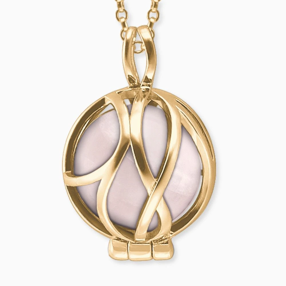 Deine persönliche Kraftperle in einem filigranen Anhänger aus unserer Powerful Stone Kollektion. Unsere wunderschöne Engelsrufer Kette mit einem bezaubernden Schmuckgehäuse als Anhänger, präsentiert Dir hier einen Rosenquarz als „Stein der Liebe“. Die Kraftperle kann nach individuellem Befinden und Belieben ausgetauscht werden. Das goldfarbene Körbchen umschließt die Kraftperle schützend und besticht durch das wunderschöne Muster des Paradise. Kraftperlen brauchen die richtige Pflege, um eine lange Lebensdauer der Steine zu garantieren. Deswegen bekommst Du mit jedem Produkt aus unserer Powerful Stone Kollektion eine kleine Guideline, mit den wichtigsten Schritten zum Entladen, Reinigen und Aufladen. Das zeitlose Schmuckstück wird mit einem Karabinerhaken verschlossen und ist in drei Längen verstellbar.