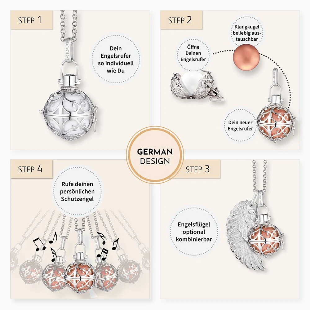 Der Engelsrufer Classic wird mit einem Karabinerhaken verschlossen und ist in zwei Längen verstellbar, damit er perfekt an Deinen Hals angepasst werden kann. Öffne das handgefertigte Körbchen und fülle es mit Deiner Lieblings-Klangkugel, um jeden Tag einen neuen Look zu kreieren. Mit seinem zarten Klang ruft der Engelsrufer Deinen persönlichen Schutzengel zu Dir und sorgt für Harmonie und Ausgeglichenheit.