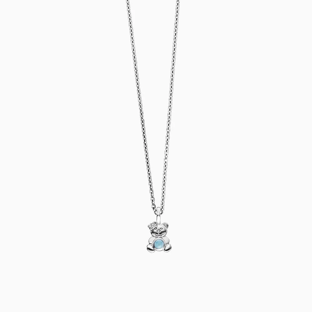 Herzengel´s Kuschelzeit – diese zauberhafte und filigrane Kette mit einem Teddy als Anhänger, lässt Mädchenherzen höherschlagen. Der Teddy umschließt schützend einen Blauen Achat als „Stein der Gesundheit und Ausgeglichenheit“. Unser kleiner Freund passt gut auf uns auf und steht stets treu an unserer Seite. Das wunderschöne Schmuckstück wird mit einem Karabinerhaken verschlossen und ist in drei Längen verstellbar.