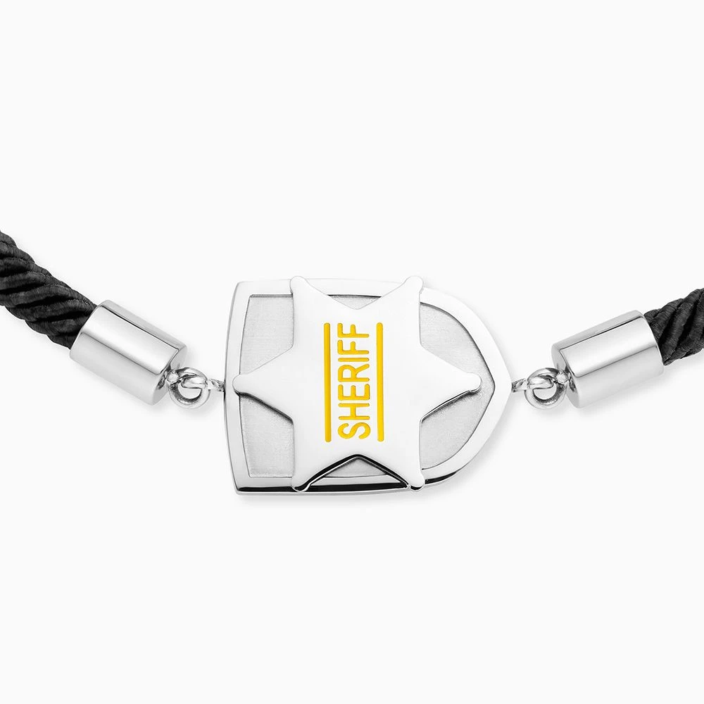 Herzengel´s Sheriff – dieses Armband mit Sheriff Symbol lässt Jungenherzen höher schlagen und überzeugt durch die leuchtenden multicolor Farben und Details aus Emaille. Mit Blaulicht und Sirene auf Gangsterjagd. Das Armband kann individuell zwischen 16 cm und 19 cm Umfang eingestellt werden. Für dieses Schmuckstück verwendet Engelsrufer hochwertigen Edelstahl, nickelfrei und ist somit auch für Allergiker hervorragend geeignet. Unsere Bänder sind aus recycelten Polyester, dadurch nutzen wir bereits existierendes Material.