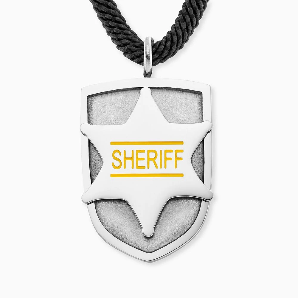 Herzengel´s Sheriff – diese Kette mit Sheriff Symbol lässt Jungenherzen höher schlagen und überzeugt durch die leuchtenden multicolor Farben und Details aus Emaille. Mit Blaulicht und Sirene auf Gangsterjagd. Das zeitlose Schmuckstück wird mit einem Karabinerhaken verschlossen. Die Kette kann individuell zwischen 40 cm und 48 cm eingestellt werden. Für dieses Schmuckstück verwendet Engelsrufer hochwertigen Edelstahl, nickelfrei und ist somit auch für Allergiker hervorragend geeignet. Unsere Bänder sind aus recycelten Polyester, dadurch nutzen wir bereits existierendes Material.