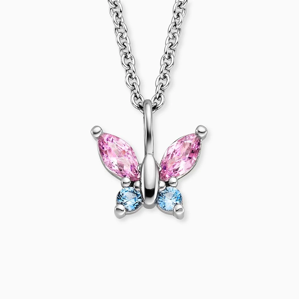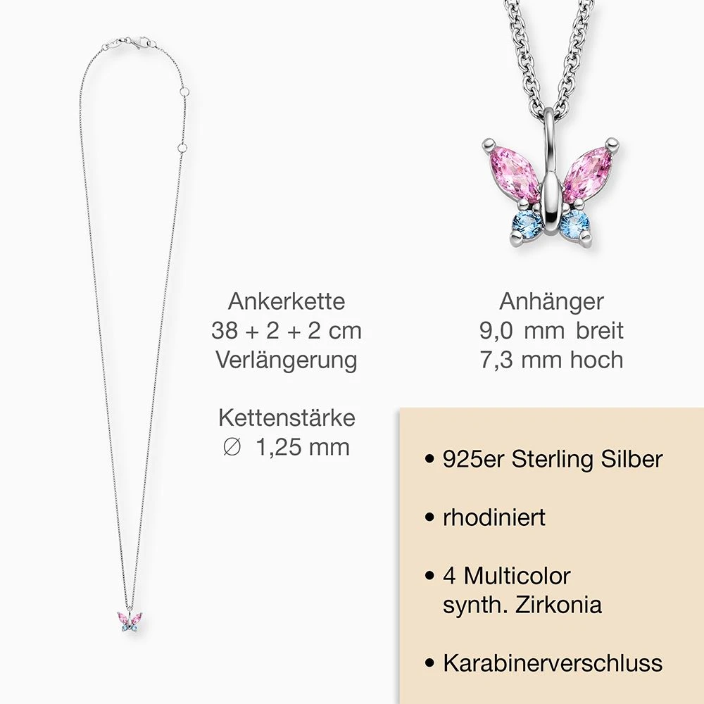 Herzengel´s magischer Schmetterling – diese filigrane und wunderschöne Kette mit einem Schmetterling Anhänger lässt Mädchenherzen höherschlagen. Als Zeichen der Wiedergeburt und der Natur verleiht der wunderschöne Falter Freude, Leichtigkeit und Esprit. Ein besonderes Highlight sind die edel schimmernden synthetischen Zirkonia Steine. Denn wodurch könnten unsere Kleinen schöner strahlen als durch wundervolle Kristalle umgeben von klassischem Silber. Das zeitlose Schmuckstück wird mit einem Karabinerhaken verschlossen und ist in den Längen 38 cm + 2 cm + 2 cm verstellbar.