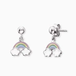Herzengel’s Regenbogen Träume – diese zauberhaften und filigranen Ohrstecker, mit einem bunten Regenbogen und weichen Wolken, lassen Mädchenherzen höherschlagen. Aufgefangen auf einem Bett aus Wolken schwebt der Regenbogen voller Harmonie und Geborgenheit. Die Regenbogenfarben glänzen fröhlich schön auf einem Hintergrund aus Emaille.