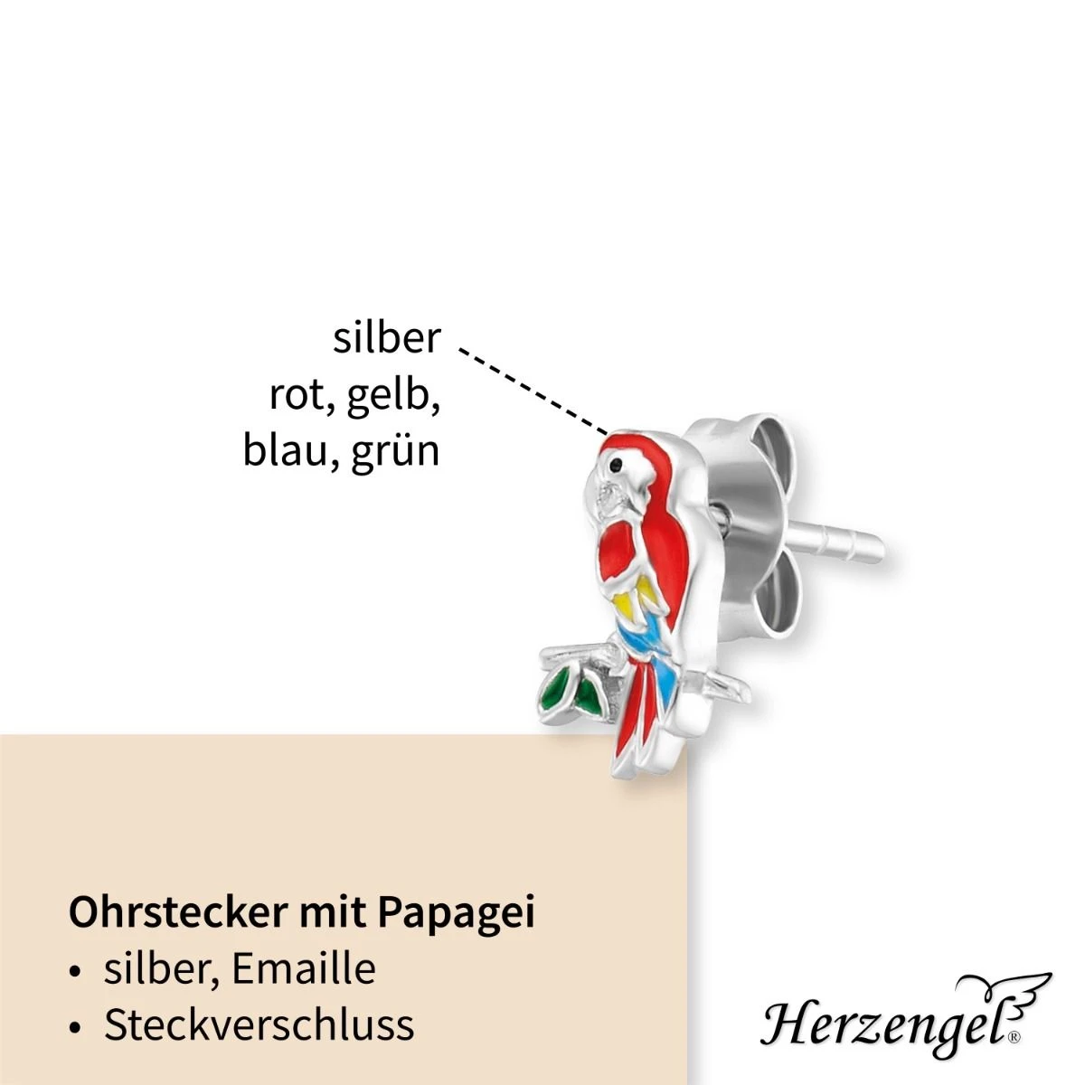 Herzengel´s fröhlicher Papagei – diese zauberhaften und filigranen Ohrstecker, mit dem Symbol eines bunten Papageis, lässt Mädchenherzen höherschlagen. Der Papagei steht für Schönheit und Fürsorge. Die Ohrstecker überzeugen durch ihre leuchtenden multicolor Farben und Details aus Emaille.