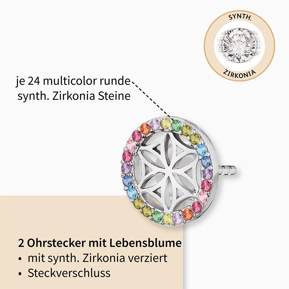 Flower of Life – diese filigranen Ohrstecker mit Lebensblume Symbol sorgen für einen tollen Blickfang und überzeugen durch ihre kraftvolle Formensprache. Seit langer Zeit symbolisiert die Lebensblume Harmonie und Ausgeglichenheit und ist ein Zeichen von Ruhe, Kraft und Lebensfreude zugleich. Ein besonderes Highlight sind die edel schimmernden synthetischen Zirkonia Steine in Multicolor. Das farbenfrohe Wunder strahlt wie ein Regenbogen umgeben von klassischem Silber. Die Ohrstecker sind perfekt mit einer Vielzahl unserer Schmuckstücke kombinierbar.