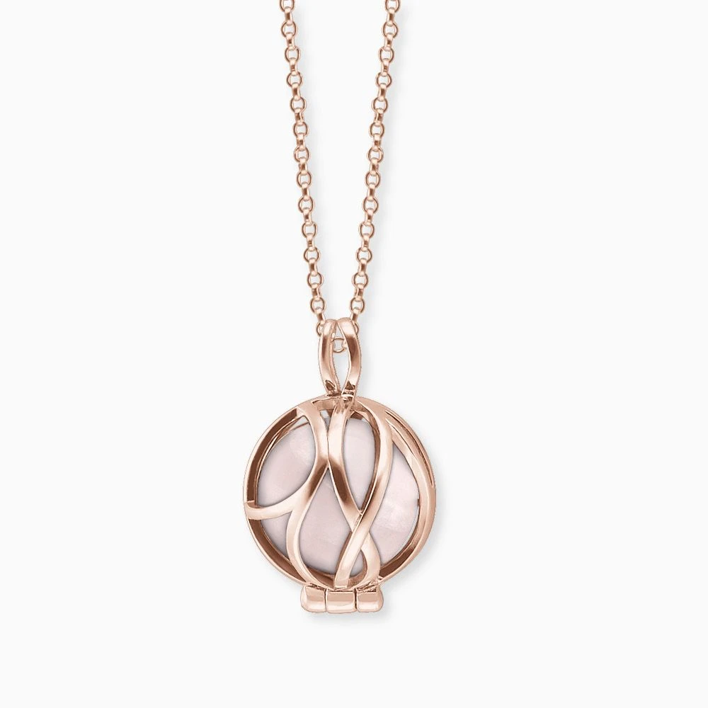 Deine persönliche Kraftperle in einem filigranen Anhänger aus unserer Powerful Stone Kollektion. Unsere wunderschöne Engelsrufer Kette mit einem bezaubernden Schmuckgehäuse als Anhänger, präsentiert Dir hier einen Rosenquarz als „Stein der Liebe“. Die Kraftperle kann nach individuellem Befinden und Belieben ausgetauscht werden. Das roséfarbene Körbchen umschließt die Kraftperle schützend und besticht durch das wunderschöne Muster des Paradise. Kraftperlen brauchen die richtige Pflege, um eine lange Lebensdauer der Steine zu garantieren. Deswegen bekommst Du mit jedem Produkt aus unserer Powerful Stone Kollektion eine kleine Guideline, mit den wichtigsten Schritten zum Entladen, Reinigen und Aufladen. Das zeitlose Schmuckstück wird mit einem Karabinerhaken verschlossen und ist in drei Längen verstellbar.