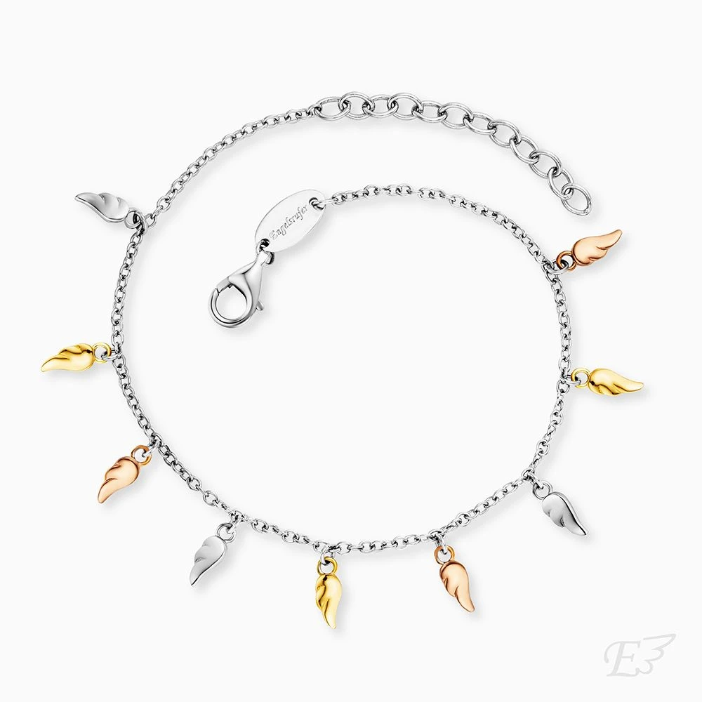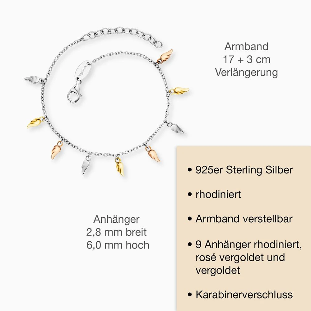 Dein beschützender Flügel – dieses wunderschöne Engelsrufer Armband mit 9 Flügelchen hüllt Dich in unendliche Geborgenheit und öffnet Dir Türen im Leben. Das ausdrucksstarke Tricolor besticht in zart schimmernden Pastelltönen und wirkt besonders sanft. Das wunderschöne Schmuckstück wird mit einem Karabinerhaken verschlossen und ist in beliebigen Längen zwischen 17 cm und 20 cm verstellbar. Engelsrufer verwendet für seine Schmuckstücke die hochwertigste Legierung 925er Sterlingsilber. Das auf dem Silber als weitere Veredelung verwendete Rhodium dient dem angenehmen Tragekomfort und schützt das Schmuckstück vor dem Anlaufen. Alle Schmuckstücke sind nickelfrei und somit auch für Allergiker hervorragend geeignet.