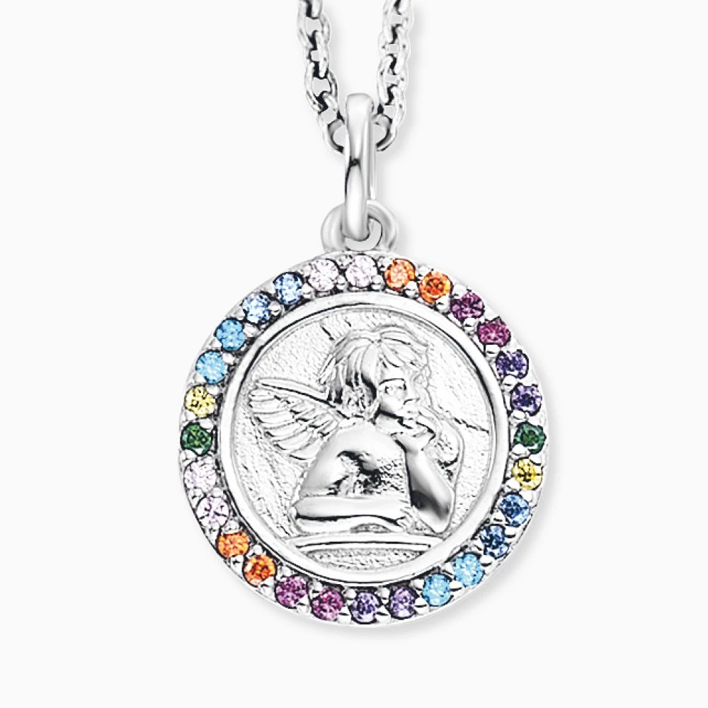 Herzengel´s kleiner Schutzengel – diese filigrane und wunderschöne Kette mit einem Schutzengel Anhänger verleiht unseren Kleinen Kraft, unendliche Liebe und Geborgenheit und ist besonders behütend. Die himmlische Kette überzeugt durch die Vielzahl an kleinen Details. Ein besonderes Highlight sind die edel schimmernden Multicolor synthetischen Zirkonia Steine. Denn wodurch könnten unsere Kleinen schöner strahlen als durch wundervolle Kristalle umgeben von klassischem Silber. Das zeitlose Schmuckstück wird mit einem Karabinerhaken verschlossen und ist in drei Längen verstellbar.